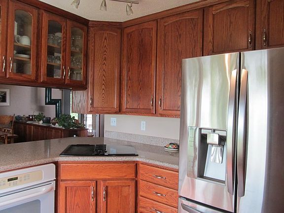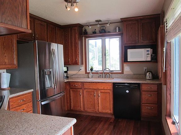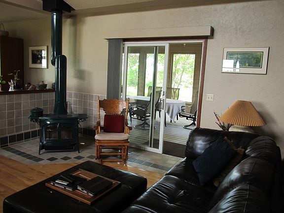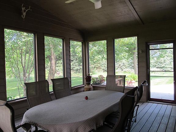 What a great location! This home sits right on the outskirts of town on 6.27 ac. As you walk in the front door you will know you are home with the warm and inviting feeling you'll get. The first thing you'll see is the sunken living room with beautiful maple flooring and a wood burning stove and patio door that leads to a wonderful 3 season porch. The kitchen is open to the dining room and has Silestone counters and includes all appliances. The spacious dining room has oak flooring and overlooks the living/family room. The master bedroom has walk-in closet. Sauna room has a separate shower and bath. Laundry on main floor. You'll love the shed with 1/3 being a heated work shop. There's also a playhouse or fancy deer stand. The site includes many fruit trees and bushes, asparagus, rhubarb, grapes and raspberries. The basement has a vented root/storm cellar for temperature control. 3 meters for furnace, heat pump and shop earn a special rate making heat costs very reasonable.