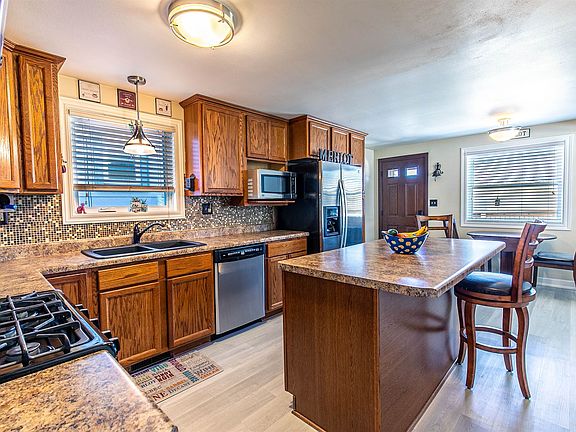 3 bedroom 2 full bath ranch with NO Back Yard whatsoever! What it does have, is a full finished basement with a 2nd kitchen and a full bath, a spacious kitchen with an island, new 2 car garage, rec room for movie nights, and a newer deck for the warm summer months!