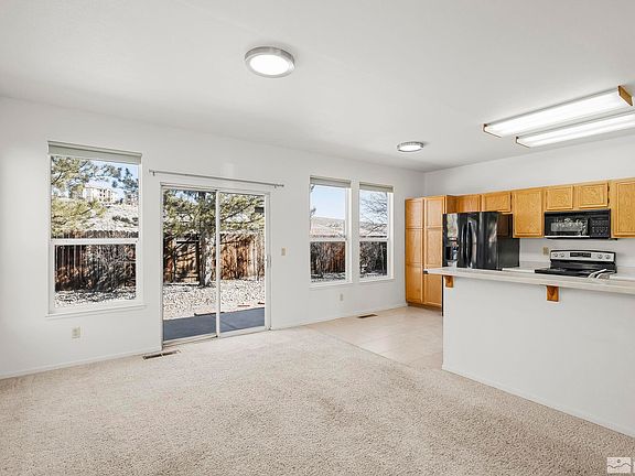 This lovely, single-story home has fresh, interior paint, updated light fixtures in the main living area, and updated faucets. Newer water heater (installed about 8 months ago by Savage & Sons), newer blinds, stove, and dishwasher (within about the past year). Dryer vents recently cleaned and replaced. All appliances are included in the purchase price, move-in ready. Easy-care landscaping in the front and back. The private backyard has several trees and no back neighbors!, This property is close to UNR, shopping, restaurants, and schools. The listing agent is a sibling of the seller. The weeds will be cleared in the front and back yard.