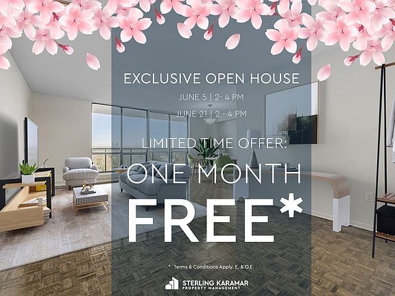 AboutLimited Time Offer | Enjoy 1 Month FREE on a 13 Month Lease!*OPEN HOUSE | June 5 from 2-4 pm & June 21 from 2-4 pmThe Gates of Bayview, one of North Toronto's most exclusive gated apartment rentals, offers residents spacious 2&3-bedroom rentals with extensive amenities, with scenic park views.To view our property from the comfort of your own home, click our virtual tour option* This gated community provides residents plentiful community events and programming and year-round convenience and comfort of an indoor pool, fitness centre, squash, and tennis courts as well as 24-hour Gatehouse security. Easy access to major highways (HWY 401, 404, 407).Community Conveniences abound with excellent shopping at Centrepoint, Bayview Village and Fairview malls plus the many shops and stores on Steeles Avenue. Residents have a variety of schools, and churches of every denomination available within a short distance. Just minutes away from North York General and St. John's Rehabilitation Centre, The Gates is also conveniently located near many parks as well as the Bayview Golf & Country Club. The Gates of Bayview is an exceptional complex that is truly an enviable location to call home. *Pricing, availability, and incentives are subject to change. Conditions apply. Suite features may vary. Images and virtual tours may not reflect actual suite finishes. E. & O.E.** Sterling Karamar Property Management is committed to providing an exceptional leasing experience. We do not request a fee to book a tour or a deposit to reserve a suite. Community AmenitiesIndoor poolStorage lockersIndoor Tennis CourtIndoor Golf CenterConvenience storeSundeckBilliards roomIndoor Squash Court24-hour gated securityFront door security personnelGymSocial room and libraryMens and ladies saunaParty RoomIn-suite laundry (select units)Professional On-Site Management TeamTable TennisSuite AmenitiesFridgeStoveCeramic floorsHardwood floorsCentral air conditioningLarge BalconiesDishwasherLarge, spacious suitesIncludes a locker on the lower levelIn suite laundry (select units)Utilities IncludedHeatWater