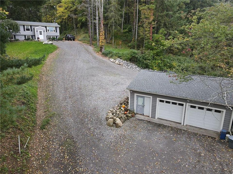 **Open Sat Oct 16th 12-2** Professionally Upgraded! (not a flip) You will be blown away by the quality of this home! Long time owners have improved with pride. Brand new Niagara shaker kitchen with quartz countertops and subway tile back splash. Completely private 2.6 acre setting surrounded by mature woods. Two amazing bathrooms! New LVT flooring, fresh paint and custom trim throughout with crown molding. Composite deck with covered porch adjoining the dining area. 24' x 28' heated garage! **Check out the improvement list!** Excludes washer, dryer, range and refrigerator(lower level fridge stays) Town Sq.Ft. of 1008 excludes finished lower level. Delayed Negotiations until Tuesday October 19 @ 7pm. 2021-10-26