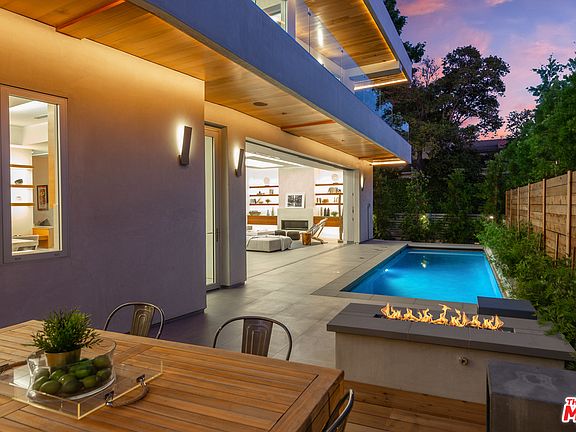 Impeccable & sophisticated masterpiece. Enter through a massive white oak door into the grand entry where you'll be immediately welcomed by this warm modern design. With an abundance of custom lighting & natural light throughout, plus an open floor plan, you are sure to be pleased. The gourmet chef's kitchen boasts rift white oak cabinetry, a Miele 6 burner stove, double oven & an approximately 9' island with beautiful quartzite counters throughout. Fleetwood doors effortlessly create a seamless indoor/outdoor flow allowing easy access to the backyard that features a sleek pool, built-in BBQ area & fire pit: this is a true entertainer's paradise. Take the floating glass staircase to the breathtaking master suite which hosts a spa bathroom, large walk-in closet & its own balcony with fruit trees/plants. The bright basement has a wine cellar, full bar, gym, movie theater & bedroom suite. This is a true architectural beauty in prime Sherman Oaks that offers a truly elevated lifestyle.