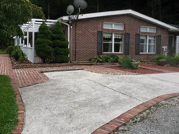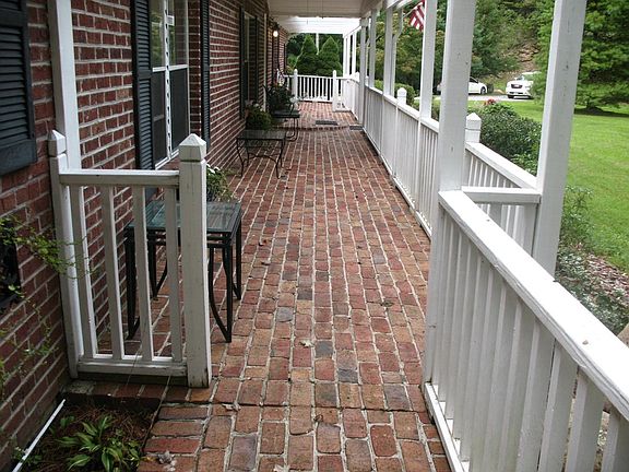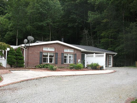 Very well keep 3 bedroom and 2 baths home that has been brick.Home is a double wide that has been added onto and remodeled. Landscape is unbelievable, Brick and stone walkways. Large open deck on back of house to entertain. Creek running along property in back and is dammed up for your swimming. Home has a den with fireplace, kitchen with island, formal dining area with built in cabinets, living room, sun room off the back deck. Home also has another sitting room off the bedroom that leads to the deck. Can also be used as an office.Two car attached garage along with another two car detached garage for your toys. Oak hardwood and tile floors. Newer metal roof. This property has a large flat front yard and is close the the horse back riding trails of Jefferson National Forest. Main appliance stay.