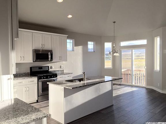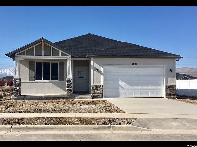 Move In NOW! Cottonwood Floor plan2 Car garage w/RV Pad. Beautiful open floor plan with 3 bedrooms and 2 baths. Stainless steel appliances: Gas range, microwave and dishwasher. Stylish grand master baths with separate shower and garden soaker tub. Large bedrooms. Spacious family room with a corner fireplace. Open layout to kitchen, dining room and family room. Great for entertaining! Kitchen includes white soft close cabinets with granite counter tops. Home has vaulted ceilings in the fam/kit/dining area and master bedroom. Home has bay window in the dining area. This home has so much to offer from usb outlets in master and Kitchen, and the list goes on. Cultured stone accents on front exterior. Includes 2yr Limited Warranty. Buyer to verify all. See the decorated model home 12-6pm Mon-Friday Sat 11-5pm for more details. Model Home address 4111 E Gazelle Run Eagle Mountain, Ut 84005. Buyer to verify all. Note: Landscaping to be installed in the Spring time. The board and batten will be painted on the exterior when the weather permits.