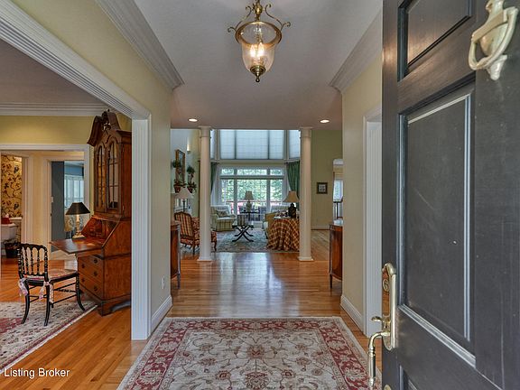 Welcome to the Estates of Hunting Creek. This custom built, elegant center entrance traditional home is classic in nature yet also has an open modern floor plan. Enjoy total first floor living with a first floor primary suite and laundry along with formal and informal entertaining spaces. The oversized kitchen includes built in appliances, a large island, marble counters, and room for both eating and seating. 3 BR suites on the 2nd floor along with guest space, rec rooms, and an exercise room in the walkout LL complete this amazing house. Finally, the private yard with views of the adjoining horse farm only add to the beauty of this property. This estate property also includes Oldham Co Schools. Call today for your private showing.