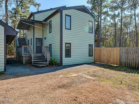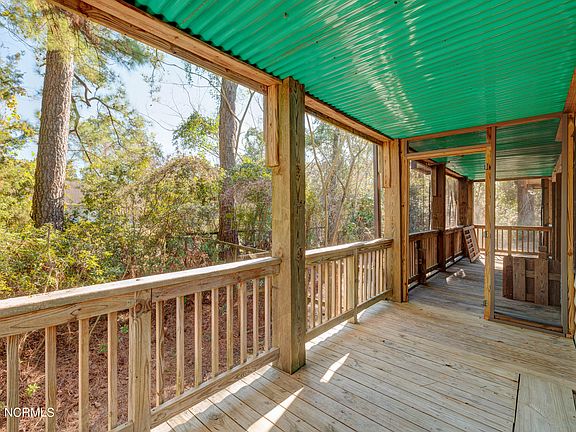 Welcome home to 4005 Glen Arbor Drive! This unique home filled with personality is nestled off Middle Sound Loop in the sought after Ogden Elementary school district. The kitchen has a dishwasher, glass top oven, a fridge that'll stay, plus a bar top for gathering around. Look up to see the beautiful tongue & groove ceiling which expands from the kitchen into the dining room space. Step into the spacious living room & you'll find scraped smooth ceilings plus a wall of glass letting in light & views of the backyard thanks to the 2 sliding glass doors. On another wall you'll find a charming wood stove from the 70's which had its piping replaced around 2019/2020. Real hardwood flooring flows throughout this main level of the house. Upstairs is a spare bedroom, spare full bathroom, plus the primary bedroom suite. This bedroom suite has it's own full bathroom & a walk-in closet but perhaps best of all french doors leading to a single step down into it's own large room with skylights & another wood burning stove (this one is not currently working & has been loved more for it's charm). This extra room also has its own exterior door leading to an upper deck. A 3rd bedroom is located on the lower level of the home with its own full bathroom. This lower bedroom room did have approx 1 inch of water intrusion during Hurricane Florence. Back on the main level is a dedicated laundry room with cabinetry plus an approx 6 month old washer & dryer set that stay w/ the home. Step out back to experience the expansive back screened in porch that overlooks the sprawling fenced backyard on this almost half acre lot. Over 1,000 sqft total of decking. The 29x24 detached garage has stairs that lead to a large 2nd level storage space (use caution if decide to go up as much of the flooring is not secure). The crawlspace has a dehumidifier & there is a whole house water filter system. Home is being sold ''as is.''
