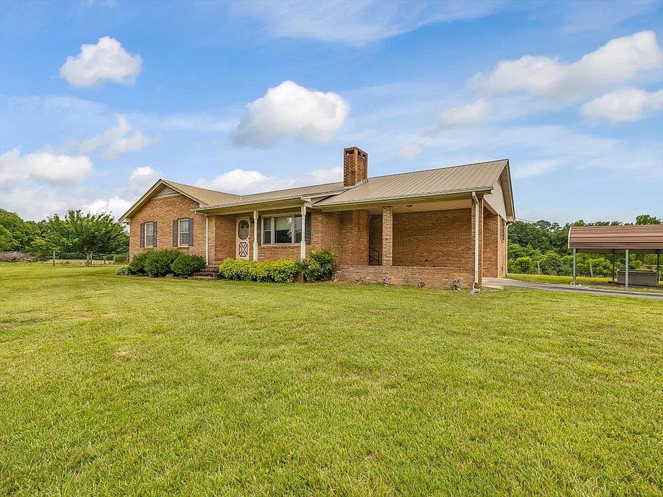 Beautiful setting in rural Goldston with over 6 acres of land, with pasture & fencing. Brick ranch home has a attached carport, detached car shed, covered deck, great gardening space. HVAC was just replaced & this is a one owner home. Interior features rock fireplace with gas logs, central vac all appliances remain and kitchen has plumbing to install a dishwasher. The office/den area was a bedroom which could easily be converted back, the built in shelves was the closet. Come enjoying the sunrise & sunsets this property has to offer.