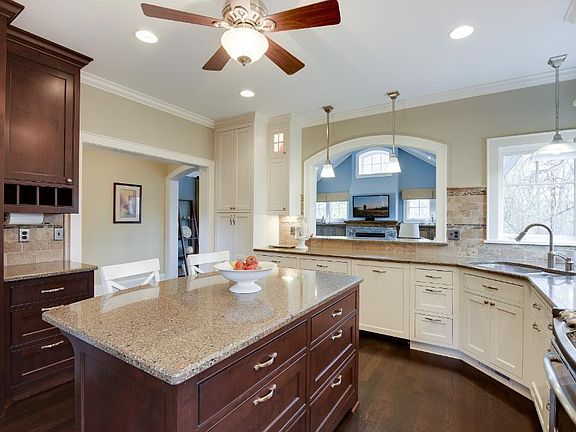 Original custom construction by TreHus Builders in 2007. Additional finish work in 2012 and 2017 by Larson Design Build. Gorgeous from top to bottom. Home boasts gleaming white wood trim, walnut stained oak flooring, large kitchen, main floor office. Huge kitchen opens to stunning great room with vaulted ceilings, built-ins and a stone gas fireplace. Generous bonus space below garage can be finished for a beloved hockey room, home gym or theatre room.