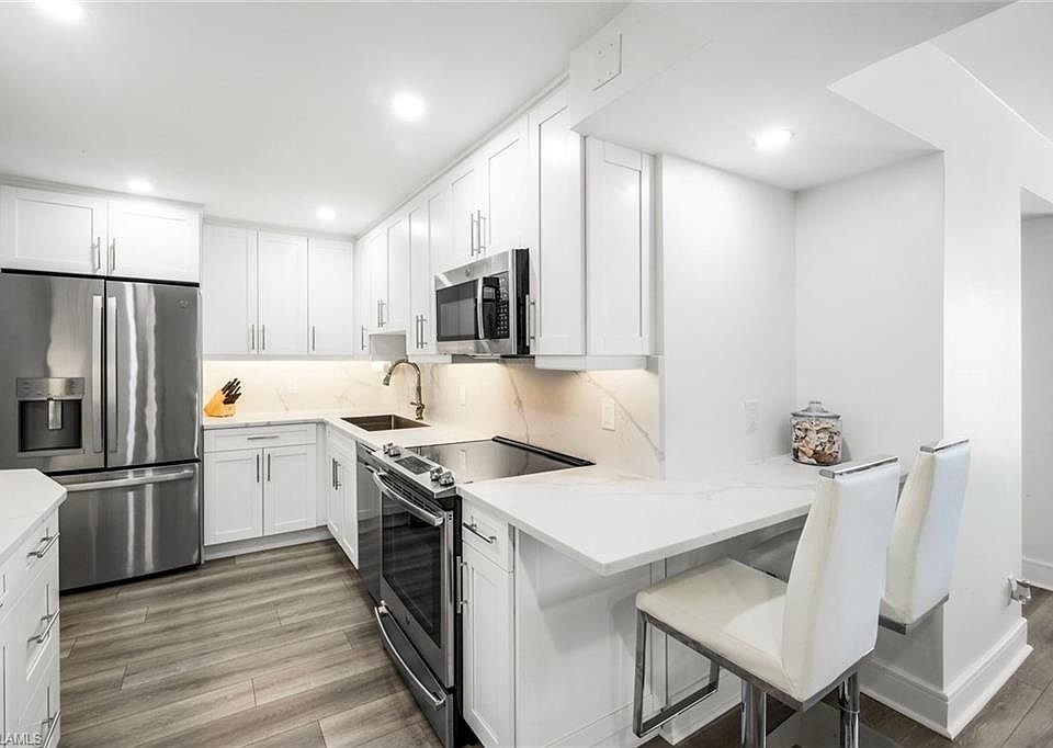 Upon entering, you are greeted by a welcoming atmosphere, where the salty breezes and toes in the sand beach access creates an instant sense of relaxation. The living area, bathed in natural light streaming through sliding glass doors to your private balcony allowing you to bask in breathtaking sunsets with Southwestern exposure. Modern design elements are seamlessly integrated throughout the interior, offering a stylish and contemporary living space waiting for you to add your personal finishing touches. A fully equipped kitchen invites culinary creativity, offering modern appliances and ample storage space for all your beachside dining essentials. The primary suite offers a peaceful sanctuary accented by quartz counters, a marble surround, & dual sinks. Discover the perfect blend of beachside living and easy access to everything Naples offers. Gulfside is perfectly positioned on the picturesque sugar sand beaches of the Gulf while walking distance to waterfront dining, and boutique shopping at the Village on Venetian Bay. The Waterside Shops, including Saks and other luxury venues, are only 1.5 mile away, while superb shopping and restaurants on Naples' 5th Avenue are just a 10-minute drive. Don't wait to enjoy your very own slice of paradise!