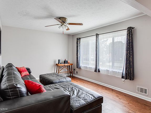Proudly introducing 4005 Gunn Court, nestled in the Treasure Island subdivision and conveniently located near the I-65 and I-265 exchange. UPDATES, UPDATES, UPDATES featured throughout include the full kitchen remodel, replacement windows, and both the roof and A/C are less than 1-year old! This beautiful home offers nearly 1,800 square feet of living space with 3-4 bedrooms and 1-1/2 bathrooms. Greeted in the sunny front living room, you'll quickly notice the neutral paint and hardwood flooring that extend throughout most of the first and second level. You'll love the eat-in kitchen that comes fully renovated with stainless steel appliances, neutral colored countertops, backsplash, flooring and an abundance of rich, walnut colored cabinetry that soars all the way to the ceiling. The second level features 3 bedrooms and a full bathroom while the basement includes a half bathroom, laundry/utility room, potential 4th bedroom (closet included) and a second living room with outside entry. Enjoy outdoor living on the oversized front porch or in the back while overlooking the 2-1/2 car garage and fully fenced backyard. All this and more offered at an attractive price that you do not want to miss! Call today to schedule a showing because this one will not last long!