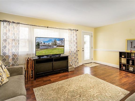 Wow! Nothing to do but move in! 3 bedroom ranch on a deep lot. 2008 high efficiency furnace, 2009 siding and roof, and front windows; 2014 Bathroom was updated, new kitchen cabinets, sink and counter top along with porcelain tile in the kitchen and dinette with a new sliding glass door to the backyard. the living room has newer hardwood flooring There is also a new air conditioning unit, windows at the back of the house, glass block in the basement, interior and exterior doors, and hot water tank. Interior is freshly painted with new carpet throughout the house and basement that has a large area for family activities and a bedroom or office. The back yard has a newer wooden deck and newer garage door too spacious backyard with lots of privacy, two car garage, kitchen appliances included, lots of storage space in basement.