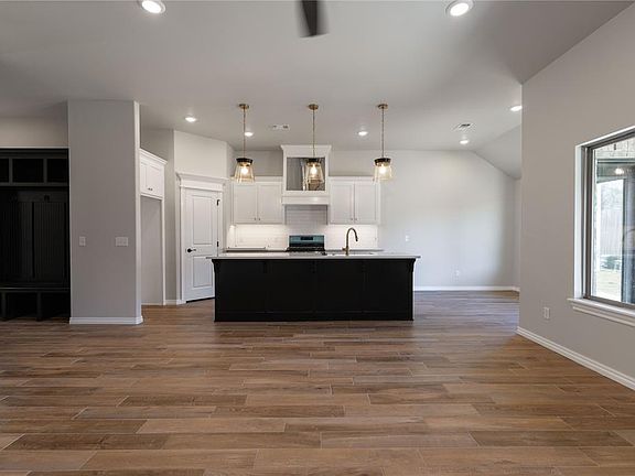 This Teagen floorplan includes 1,715 Sqft of total living space, which features 1,625 Sqft of indoor living space & 90 Sqft of outdoor living space. There's also a 390 Sqft, two car garage with a storm shelter installed! The timeless Teagen offers 3 bedrooms, 2 full bathrooms, 2 covered patios, & a utility room. The great room presents a corner gas fireplace surrounded by our stacked stone detail, wood-look tile, a ceiling fan, large windows, and 4 additional puck lights. The high-end kitchen supports a large center island, stunning pendant lighting, 3 CM countertops, a corner pantry, custom-built cabinets with beautiful cabinet hardware installed throughout, & stainless-steel appliances. The prime suite includes a sloped ceiling detail with a ceiling fan, windows, and our cozy carpet finish. The primary bath includes a walk-in shower, a stand alone tub, separate vanities, a private water closet, and a spacious walk-in closet! Need more storage? There is also a mudbench included! The covered back patio offers a wood-burning fireplace, a gas line for your grill, & a TV hookup. Other amenities include healthy home technology, an air filtration system, a tankless water heater to provide endless hot water, R-44 insulation, & so much more!
