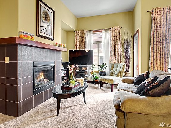 Lovely large contemporary unit.Master suite very roomie with walk in closet private bath/shower area. 2nd room is a big 10 by 11. Is now being used as a bedroom.May be great office space or guest room.Dark wood finishes and open kitchen with high ceilings adds to the spacious feeling of this home.Gas fireplace, large bright windows and a private balcony.Secure building with elevator for added comfort. Location walking distance to stores and restaurants.Won't be disappointed!