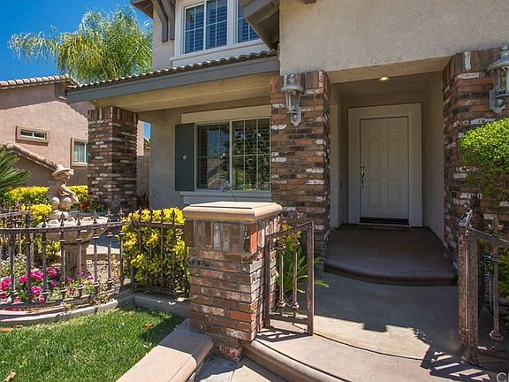 Beautiful "Must See" Eagle Glen home on a quiet Cul-de-sac on a large 9000+sq ft lot with a designer front yard with gated courtyard area and slate flooring. Interior features 5 large bedrooms with Walk-in closets and 4 bathrooms which includes a downstairs guest suite. There is also a Living Room, formal Dining Room, large Family room with custom cabinetry and an AV center, large kitchen with new satinless steel appliances, a wine cooler and a walk-in pantry. Home includes a large Bonus Room and has been completely repainted and recarpeted throughout, ceiling fans in all rooms, hardwood flooring on ground floor and large crown molding in all open areas on both floors. The Oversized masterbedroom features a walk-out deck thru a french door with east facing mountain views and the pool below, the master bath has duel his and her vanities with a walk-in closest which includes shelves and cabinets. Double french doors lead out to a spacious rear yard with lawn area, designer saltwater pool with waterfalls, elevated oversize spa with triple hayward pumps, large built-in BBQ with satinless steel refrigerator, storage area, ice sink and a double pole palapa. This home is completely move in ready and entertainment ready!