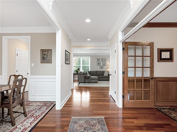 Exceptional brick custom home on a cul-de-sac lot in desirable Field Lake estates. 2 story entry filled with natural light greets you into this inviting home. Hardwood floors flow throughout the main level. Elegant office with built-ins, bench seat, crown molding, wainscoting & french doors. Dining Room with bay window & wainscoting open to the cherry kitchen with granite, backsplash, updated stainless steel appliances. Kitchen open to the Family Room with corner fireplace & wall of windows. Convenient 1st fl laundry. Master with tray ceiling, walk-in closet, dual sinks & updated glass enclosed tile shower. Bedroom 2 w/ vaulted ceiling & ensuite bath. Generous sized Beds 3 & 4 w/ hall bath. Newly finished game room w/ full bath, potential for 5th bedroom in gaming room (just needs a door added), family room space & amazing storage. Trex deck off kitchen overlooking the level, fenced rear yard. Pristine condition. Move right in! Low Butler County taxes & Mars School District!