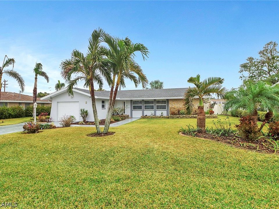 Location, Beauty, & Quality! You can find it all in this house that is centrally located in the SE part of Cape Coral. New 2023 roof. Beautiful kitchen with wood cabinets, granite tops & stainless steel appliances. Great split-layout with tons of storage space. Charming Master Suite with a private bathroom and built in walk-in closet. Gorgeously designed guest bathroom with a double-sink. Screened in lanai and a breathtaking, manicured, and fenced-in backyard. Auto-irrigation system installed. Immaculate & bright garage equipped with extra cabinets for your convenience, washer and dryer, and enough room for an extra refrigerator. You will love this attractive looking home in a quiet neighborhood, yet in a very central area- close to everything! City sewer and water! Woohoo!