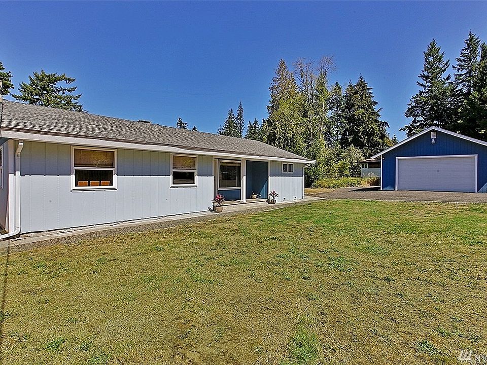 Rambler w basement on shy 1/2 acre. Entry opens to spacious living room w wood stove insert & add'l seating or mini den space. Open kitchen w shaker cabinets- flows to dining area. Bedrooms on one side share hallway & full bath. Fresh carpet throughout, vinyl, & paint update this home. Complete basement finishing & increase your usable square footage. Outside enjoy apple trees, firepit, tons of parking. Cover slab for add'l cov'd parking. Shop-110 amp panel/wired w 220V supply-wkbench, lights.