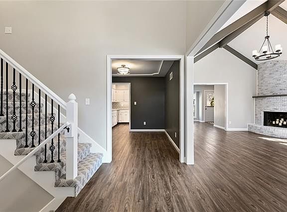 Fabulous Completely Remodeled Raintree Home with Lake Views in Lee's Summit Schools with Gross Sq ft of 2,492 sq ft! Nearly Impossible to get this close to Lake under $300! Stunning Remodel led by Engineer so no detail missed-New Siding,Windows,Driveway/Sidewalk, HVAC, Insulation, Ceilings, Extensive Yard Work w/Pool Removed & proper Drainage & Grading surrounding home providing awesome Structural Integrity, New Lighting/Plumbing/Flooring, New Doors... no room left untouched! The Great Room offers a F/P,Vaulted Ceilingw/Beams and huge Windows to take in Lake Views. Master Bedroom also offering great Vaulted Ceilings w/Beams. Kitchen is stunning offering Quartz Countertops, Subway Tile Backsplash, Pantry w/Sliding Barn Door,& Stainless Steel Appliances, New Plumbing & Lighting. Bathrooms are completely Updated with Modern Vanities, Quartz Countertops, Tile Floors, and New Plumbing/Lighting. You will love the Master Shower with Subway Tile, Rainshower Head, & Xtra thick Custom Glass Doors! Basement offers 874 sq ft of great potential expansion of Liv Space. Do not miss Improvement Sheet Supplement with Detailed info on Improvements!