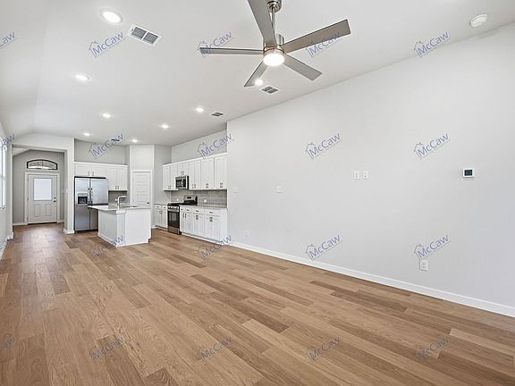 Brand new - 2025 build - 3 bedroom, 2 bathroom home. Inviting chef's delight spacious kitchen with large center island, perfect for preparing meals and gathering! Ample white cabinets and Stainless appliances, including a new Stainless Steel refrigerator in the kitchen. A new washer and dryer are included in the utility room. Large primary bedroom with a large primary bathroom with walk-in shower and dual sinks & oversized walk in closet. Private fenced backyard. Attached two-car garage with garage door opener. This is a great opportunity to live in a NEW home!! Hurry will not last long!