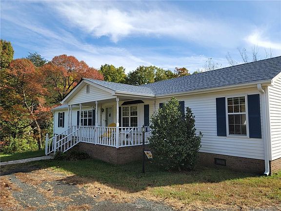 Spacious get away or Full time 3 bedroom 2 bath well maintained quality home in country scenic Stokes county ,NC. Spread out with 1809sqft on 1.87 acres. Welcoming front porch with Sauratown Mountain view. Relaxing sunroom. Attached 2 car garage is over 600sqft. Four walk-in closets and spacious pantry. Jetted tub with separate shower with seat & large double vanity in private primary suite. Wood burning fireplace in the great room with vaulted ceilings and built in speakers. All GE Appliances in eat-in country kitchen plus 2019 Whirlpool washer and dryer in convenient laundry room remain. Separate formal dining room or home office with French doors to entry foyer. Trane heat pump. Central AC. Total Electric. Vinyl tilt windows. Energy efficient with low maintenance vinyl and brick. New architectural shingle roof 2018. New LVP bathroom floors installing 2021. Close to Hanging Rock State Park, Belews lake, Danbury , King &Germanton.