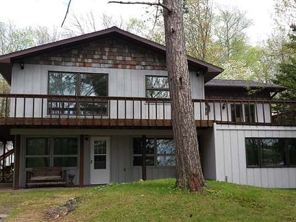 Like new, Flannery Lake home with 136' of level sand frontage with westerly water views. The home is located on a beautiful landscaped lot with circular driveway off a dead end road. This home has had a "down to the studs" professional remodel in 2013. Some of the highlights include new fixtures, bathrooms, flooring, walls and ceilings. The lower level has 2 bedrooms, large rec room, wet bar, utility room, bathroom with shower and walk out lakeside patio. The main level features a large maste...