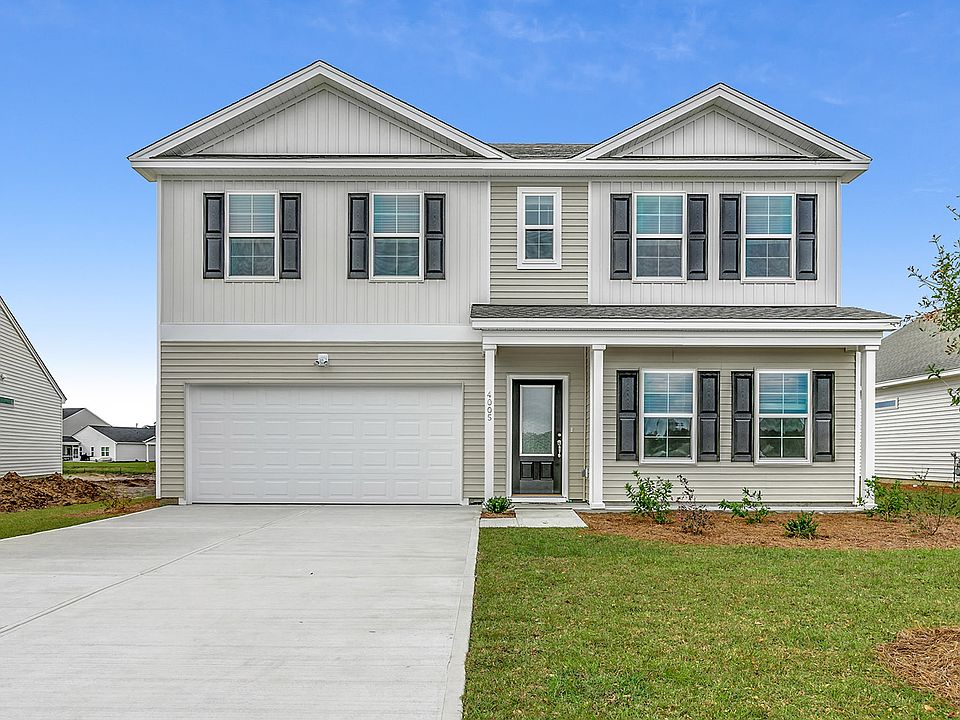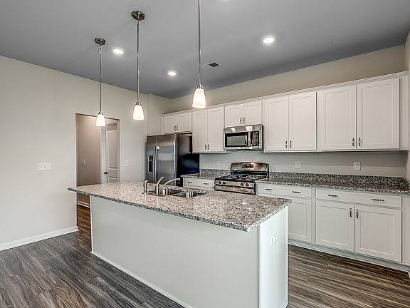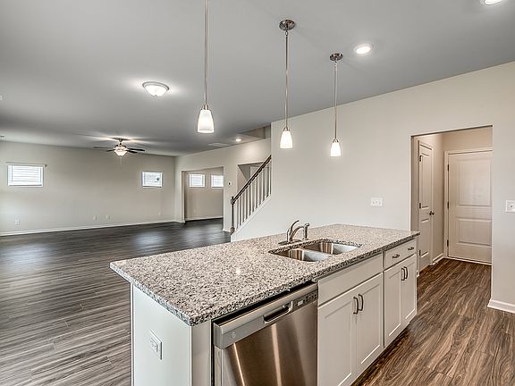 Welcome home to the Turner! This two-story home features six bedrooms, including a guest suite on the first floor, four full and one-half baths, and a covered back porch. The kitchen comes equipped with white cabinets, granite countertops, a walk-in pantry and GE stainless steel appliances, includes gas range and a refrigerator. The open-concept kitchen, living room, and dining room make entertaining easy. Upstairs you'll find the primary bedroom with tray ceiling and en suite featuring a raised vanity with dual sinks and quartz countertop, two linen closets and a large walk-in closet. The remaining four bedrooms upstairs share two full baths, both with dual sinks. A loft, perfect for hanging out, and a conveniently located laundry room round out the top floor. Photos are of the actual home, except for virtual staged photos.
