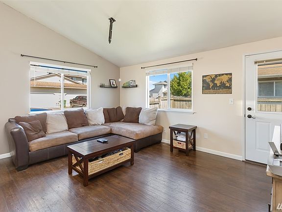 Enjoy a convenient life in this fresh, clean duplex townhouse condo with updated kitchen, new engineered hardwood floors, newer carpet, new ceiling fans, and more. The master suite is on the main floor. The projects are done. Move in and relax in the great room or in the back yard. Shoot hoops at the sport court while others play at the play park. Easy access to Twin Lakes Park, the Strawberry Fields, Centennial Trail, retail, restaurants, and I-5. Large garage for your cars, and workbench.