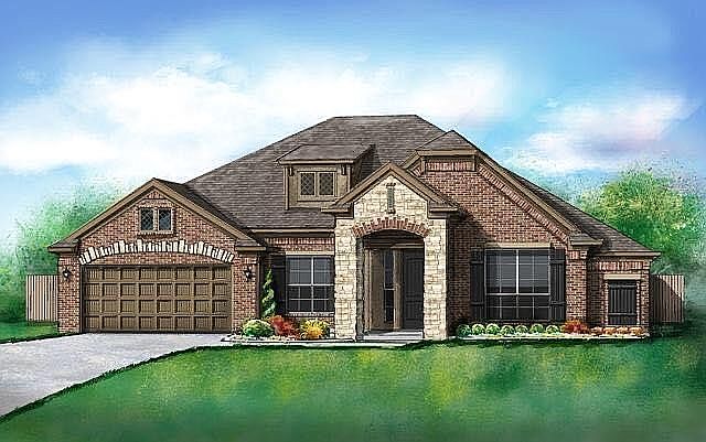 This gorgeous home offers a traditional/smart home making it the perfect fit for everyone! 3 great size bedrooms on the main floor, a true office space/den, and a wonderful size bonus room with full bath upstairs that can convert to extra room or home theater room. The bright and open Living/kitchen is perfect for entertaining, it offers a cozy corner gas fireplace in the living area, features built-in stainless steel appliances with quartz countertops and a breakfast bar! Don't be fooled by the 2 car garage. It is actually is a 3 car tandem garage with a underground storm shelter! Don't worry about car garage being an issue, the driveway can park 4 more cars without blocking the sidewalk! The backyard is great in size and offers endless possibilities, features sprinkler systems, dry creek landscape with Pine trees, extended patio, professionally install outdoor Snapsports Basketball court, a 8x12 Garden Barn for extra Utility Storage and Cedar Split Rail Fence that opens to football size common area that leads you to peaceful pond, neighborhood playground, pool and gym, clubhouse, and walking trails! The location provides easy access to I-35, stores, restaurants, and more! New roof and gutters were just installed too! The home boasts a HERS excellent score, guaranteeing low heating/cooling costs all year long!