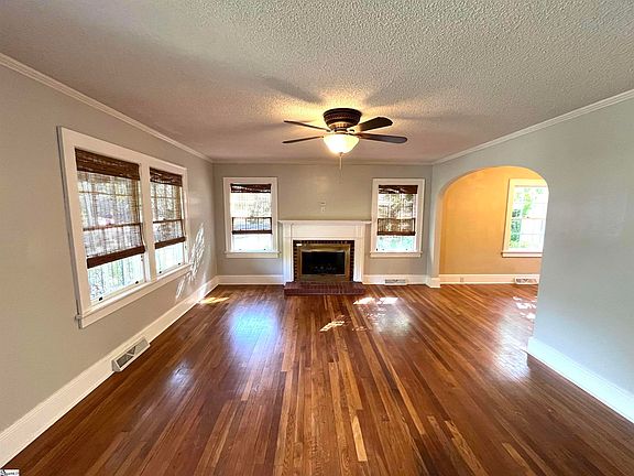 3 Bedroom, 2 bath home minutes from Downtown Greer and Century Park (Kids Planet). Hardwood floors throughout, NO CARPET! The living room has a gas log fireplace and flows into the dining room and kitchen. The kitchen has tons of cabinetry, countertops, and comes with a stove, fridge, and dishwasher. The master bedroom has its own en-suite bathroom with an extended vanity and a shower. Both secondary bedrooms share the centrally located hall bath. The laundry room already comes equipped with a washer & dryer. Outside you will find a fully fenced backyard, patio, huge front porch, detached garage, and workshop with power. Upgrades include: 1. New HVAC in 2018, 2. Electrical updated in house and garage - 2010 3. New roof on house and garage -2014 4. New water heater - 2017 5. New insulation in attic - 2012 6. Crawl space encapsulated and foam foundation walls - 2011 7. New light fixtures, appliances, lower cabinets and counter tops in kitchen - 2010 8. Garden shed built on backside of garage - 2014 9. Refinished hardwood floors - 2010 10. Both bathrooms updated - 2013 & 2016 11. Laundry closet built to accommodate stack-able units - 2010