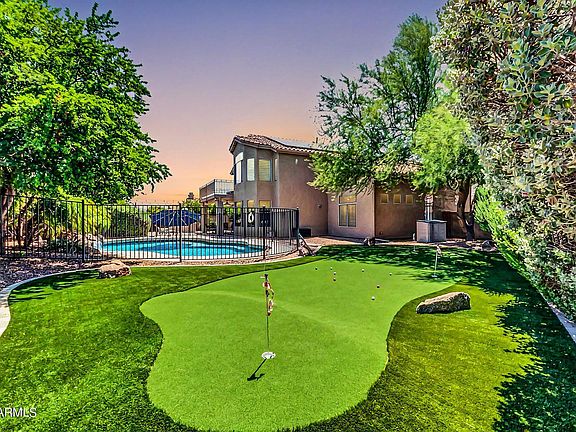Highly UPDATED home in the desirable neighborhood of Desert Ridge. Entertainers backyard oasis features a sparkling HEATED pool w/ rock waterfall, built in BBQ, PUTTING GREEN & covered patio. This home on an oversized lot has a grand entry with sweeping staircase, wood look tile and neutral paint. Formal living/dining/bonus room provide extra room for entertaining. Family room with gas fireplace is open to the spacious kitchen w/ large center island, plenty of cabinetry and breakfast nook. Upstairs you'll find a large master bedroom with sitting area and private balcony w/ gorgeous mountain views. The loft is perfect for a game room or office. Just minutes from Desert Ridge Marketplace and North Scottsdale shopping and dining and easy freeway access
