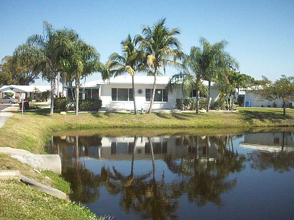VERY BEST OF RIVER ISLES .ON THE WATER WITH GREAT RIVER VIEWS AS WELL.2 bedroom 2 bath home completely modernized and updated in every manner .Porcelain tile thorough except for 2 bedrooms (Carpet). large enclosed Florida room(12x16) with separate a/c not included in square footage. Newer A/C system and Roof just a few years ago .Granite counter tops and updated appliances . Landscaped from front to back with sprinkler system . This home is just ready for you to move in and enjoy the Florida lifestyle . Low HOA Fees of $150 per quarter and 9 hole golf course just around the corner for you to enjoy
