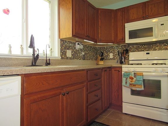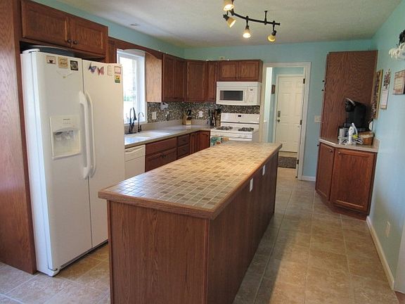 Pristine inside and out! This three bedroom, two and a half bath ranch will not disappoint! With almost 2,000 sq ft. this home boasts plenty of living space, a nice updated eat-in kitchen with solid surface counter tops and an amazing 8 foot island for entertaining. Large family room is open to the dining area with beautiful brick fireplace which has been converted into a wood pellet stove. Newer windows, doors, siding, roof, driveway, furnace, AC, water softener, deck, insulation and more. Outside you will find a beautifully landscaped yard, 2 storage sheds and a great back deck with sun sails! This home shows pride of ownership and is in Western Schools. Nothing to do, but move in!
