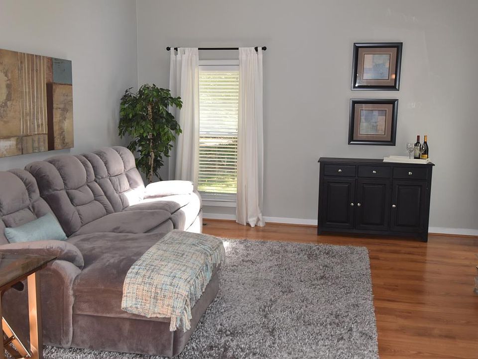 MORE PHOTOS COMING! Applications now being accepted for rental. Cute, updated, contemporary home in the McTyres Cove neighborhood of Brandermill. This home is only steps away from the trail to the waterfront picnic and fishing area. Seasonal water views. Comfortable, open floor plan with vaulted ceilings in the den and dining areas. Skylights, wood burning stone fireplace with TV mount over mantel. Updated kitchen has granite, tiled floor, stainless appliances including front water and ice dispensing refrigerator and a pantry. A sliding glass door opens to the rear deck area. Laminate flooring in den, eating area, master bedroom and hallways. Master has dual closets with sliding door to deck and private bath. Washer and dryer included in a large laundry room. Two other spacious bedrooms with carpeting. Large closets and great storage throughout, including a pull down floored attic. This home has a huge rear deck, a fenced yard and a seating bench in the front. Community recreation facilities include trails, playgrounds, lake access, a farmers? market and community events. Pool, golf and tennis memberships available. Owner/Agent No smoking on premises. Pet decision on individual basis with additional deposit. $40 credit check fee.
