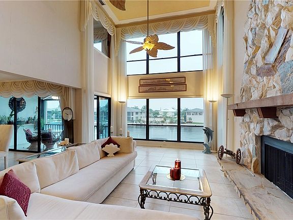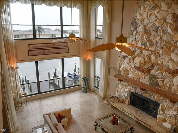 Owner is offering a Home Warranty. HUGE PRICE REDUCTION Bring any reasonable offer!!! WATER VIEW FROM EVERY ROOM - Great for multi-family living. Be Sure to Click virtual interactive cinematic, 3D views, floor plan. This is a 1 of a kind unit, designed by the builder for his own personal Residence. Enjoy a fire in your 2-story stone wood-burning fireplace and sunset right from your sofa, while watching the dolphins play as well as schools of stingrays in this amazing 2-Story corner Penthouse. The ONLY Penthouse in Park View Pointe Condo. This is an end/corner unit with views of the water out every window, complete with electric hurricane shutters. The ONLY unit with 2 deeded garages. You have a deeded slip with a 10,000# 20' boat lift. Tiki Huts abound the property for gathering throughout. Totally designed for entertaining, complete with a wet bar and a cedar wine cellar shipped in from California. Tons of built-ins and storage, secret hideaway & storage under the stairs. Inside laundry on main floor in the guest suite that would be perfect for guests. Lovely Community Pool & Spa. Note: Price has been adjusted for updating. NOTE: Original blue prints available.