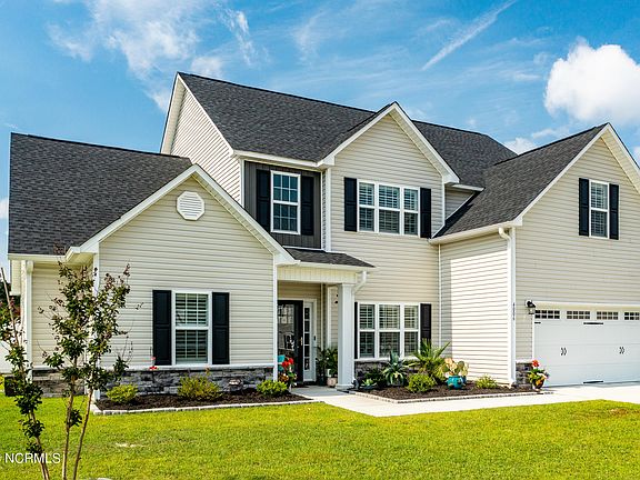 $10,000 BUYER USE AS YOU CHOOSE! Why pay out of pocket for builder upgrades when this rare gem is already fully loaded with all the builder upgrades, plus bells and whistles sellers personally added, plus MOVE IN READY! Unique FIVE bedroom, three and a half bathroom pristine home on .46 acre lot in the premier neighborhood of Bluewater Rise is ready to become your new dream home. If you're looking for the perfect floor plan, look no further! From the front porch that greets all with unmatched hospitality to the fully fenced backyard containing an entertainer's dream, nothing in between will disappoint. The private two story foyer offers entry to the formal dining room, the stairs, and access to the fantastic social area of the home, perfect for entertaining and spending time with loved ones and friends. The large granite kitchen with stainless appliances offers plenty of storage and working counter space, ensuring chefs have ample room to prepare culinary delights while socializing with others. The stately principle bedroom, also located on the first floor, offers a private, relaxing retreat with tray ceiling and a luxury bathroom with large soaking tub, and huge walk in closet. The second floor hosts four more large bedrooms, one room with access with plenty of flexible space to accommodate most furniture -one with nook for office or library. This home defines outdoor oasis offering a charming screened porch with large professional patio with pavers for grilling and gorgeous pergola and fire-pit, overlooking the large fully vinyl fenced backyard. Convenient to shopping, hospitals, schools, bases, and beaches, this home proves yes, you can have it all!