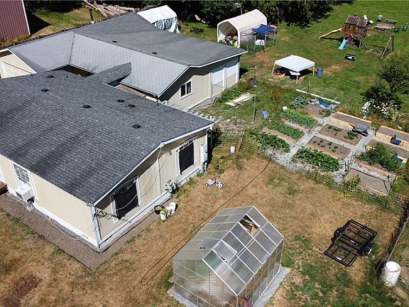 Private retreat on shy 3.5 level acres! Country living close to I-5/Stanwood. Original home & 2 car garage are stick built w/double wide manufactured home added. Master bedroom w/full bath. 3 additional bedrooms. Room off back of garage w/free standing wood stove. Large enclosed and covered patio, play structure, fire pit. Outbuildings, chicken coop, pig pen, greenhouse, garden space, individual well & septic! New stove in kitchen. Minutes to freeway.