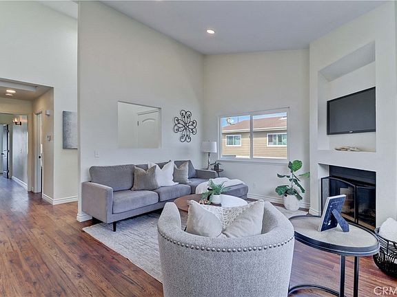 Fabulous, Upper level end unit condo nestled in peaceful Santa Ana neighborhood. This fully remodeled home features an open-concept floor plan w/ 2 bedrooms, 2 baths and tasteful finishes to complement a variety of furnishing styles. Open the entry door to an entertainer's dream. Gorgeous gourmet kitchen offers stunning cabinets w/ quartz counter top, and a gorgeous designer back splash, high end stainless steel appliances over looking dining area. Relax in your vaulted living/family room complete with a fireplace. An impressive and elegant master suite w ample closet space, upgraded bathroom cabinets w/ quartz counter top. Home was completely redone at the end of 2020. Home functions as THREE bedrooms. Highlights include a bright, open & spacious floor plan with cathedral ceiling throughout home, newer water resisted flooring, newer custom interior paint, newer energy-efficient recessed LED lightings throughout, newer doors, newer windows, newer garage door, newer motor, new epoxy painted floor. Inside washer/dryer hookups. Newer AC unit. Peaceful outdoor balcony area. All is fabulous. Property is conveniently located near freeway, shopping. An absolute must see!