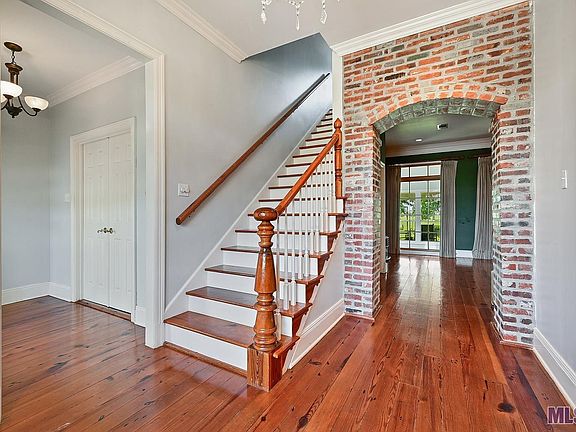 Welcome to 40065 Farm Road—a 2.8-acre oasis in Ascension Parish. You will be greeted by a circular driveway leading into a landscaped courtyard. Entering the foyer, you notice the beautiful millwork, stunning wood floors, high ceilings and crown molding. With three bedrooms, three baths, and abundant natural light, this home offers a unique warm and inviting atmosphere. Beyond the brick arch, the home opens up into the spacious family room. The family room features crown molding, wood flooring, a double gas fireplace shared with the formal dining room and French doors leading into the enclosed sunroom. The family room and dining room seamlessly transition into the kitchen with a butler’s pantry. The kitchen boasts brick flooring, granite countertops, and stainless steel appliances, including a gas cooktop range and wall oven. The centerpiece island and ample cabinetry provide style and functionality. Adjacent to the kitchen, the breakfast room offers breathtaking views of the property. There is a full-sized bath near the kitchen and breakfast room and a laundry room with wall to wall cabinets. The primary bedroom downstairs features built-in wall cabinets, an en suite with double vanities, a soaking tub, separate shower and two walk-in closets with storage. The second floor offers an office nook with bookcases, two generously sized bedrooms with walk-in closets, and a recently renovated Jack and Jill bath. Enjoy amazing sunset views and privacy when you step into the south-west facing backyard oasis with an inviting gazebo, greenhouse, and private pond stocked with fish. Located to the right of the driveway is an attached double garage with storage and an attic. This home blends elegance, functionality, and natural beauty. From the sunlit family room to the lush gardens, it's a perfect retreat for country living with city convenience.