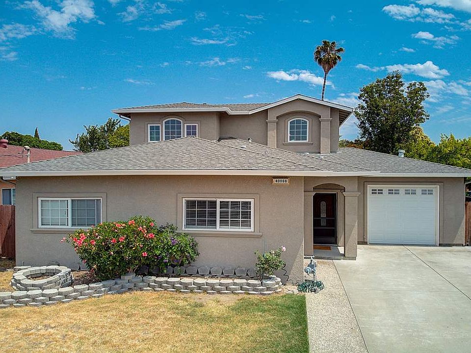 This lovely Fremont home was remodeled from ground up in 2003 with central heating and air conditioning, fire sprinklers, automatic water sprinklers, recess lighting and dual-pane windows. Its large windows give access to sunlight throughout the day and makes the home well ventilated. The house was re-painted both interior and exterior, kitchen was remodeled, island and hutch area were added in 2016 to give the house contemporary look. Master bedroom suite looks over Mission Hills and has luxurious jacuzzi installed in the master bathroom. The front and back yard has automatic water sprinklers. Close access to Lake Elizabeth, library, shopping, BART, 680 and 880 freeways.