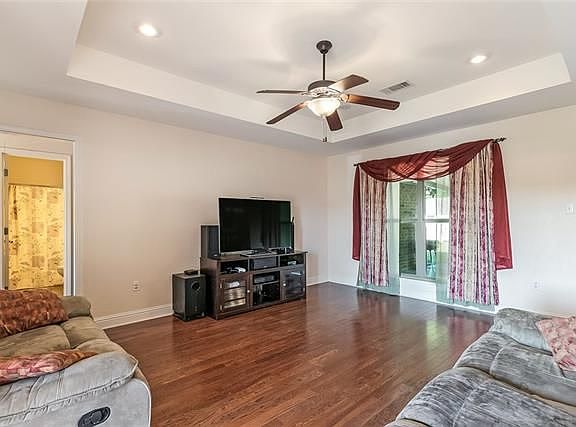 Park your boat or trailer in this back yard and still have plenty of yard left! This cute home has a mancave or media room and over half an acre with no subdivision restrictions! Wood floors in the living room, kitchen with pantry and lots of cabinets, dining room overlooks huge back yard. Master suite with garden tub and separate shower. Laundry room, large covered back porch, big shed, and located at the end of the street with fenced yard that backs up to woods. Never flooded and in flood zone X.