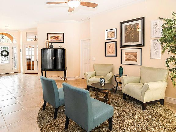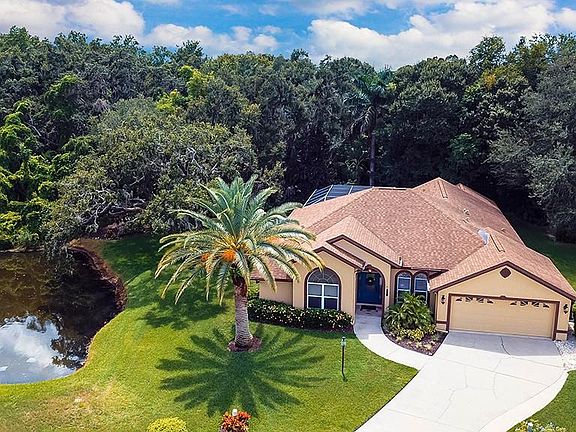Welcome home to your own slice of Florida paradise! This 4 bed, 2.5 bath home is centrally located off Lockwood Ridge in the charming neighborhood of Quail Run. Nestled at the end of a quiet cul-de-sac lies a home that will enthrall you from the moment you enter the etched glass front door. The property itself is .413 acres of a horticulturalist's dream with a healthy pond, outdoor fire pit and gathering area, a raised platform deck overlooking the water, and a sparkling pool with a screened lanai and oversized covered area perfect for dining and relaxation ... all surrounded by fruit trees and native Florida vegetation for the ultimate Florida setting. The inside living area is beautifully designed around the pool with bright, natural light at every turn. Do you love to entertain family and friends? You and your guests will be so comfortable moving about the home from the dining room to the sitting area, to the gourmet kitchen overlooking the family room, all opening to the outdoor lanai and pool. The kitchen is a chef's dream, featuring two-year-old LG Stainless appliances, gas cooking, real wood cabinetry with granite counter tops, a butler's pantry for additional storage and counter space, and a breakfast nook overlooking the pool with aquarium glass windows. With a split bedroom floor plan and 2,625 sq ft, the master suite offers an intimate place to unwind with a connecting private office. Three additional spacious bedrooms offer guests plenty of privacy on the other side of the home. The half bath operates as a pool bath, and has an exterior pool deck shower making it fun and easy to jump in and out of your heated saltwater pool. This is the perfect place to begin making lasting memories, minutes from famous beaches, shopping, dining, golfing and downtown. A true MUST-SEE gem waiting for you to call it home!