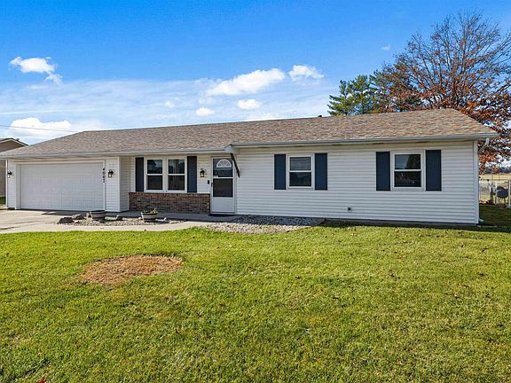 Charming and humble, this is peaceful country living at an affordable price! This adorable home has so much to offer with two living areas, an eat in kitchen (all appliances included), 4 bedrooms and 1.5 baths. Storage is no problem here with the attached two car garage AND the additional 26 X 28 detached outbuilding (built in 2015) with 100 amp electric service, perfect for a workshop and hobbies. Major updates include: new roof, windows, patio slider door, and flooring installed only 3 years ago! The main bathroom was renovated within the last 5 years. Great lot that backs directly up to Woodburn farm ground and only 20 mins from Fort Wayne and 15 mins to New Haven. Check this home out today!