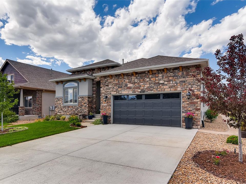 This stunning corner lot ranch was the community's MODEL HOME & includes a wonderful layout w/ ton of upgrades! You are welcomed into the wide open living room w/ vaulted ceilings, engineered hardwood throughout, a gourmet kitchen w/ quartz countertops, crown molding on cabinets, 5 burner gas stove, a farmhouse sink & a double oven! Each bedroom on the main has their own private bathroom! The wet room features oversized washer & dryer & the garage is fully finished & Drywalled w/an electric car plug-in! The finished basement includes a full bar w/refrigerator & sink, and 2 additional bedrooms w/ jack and jill! Fully finished backyard landscaping w/ treks deck! Commercial & Employee development is rapidly growing in Johnstown, so NOW is your opportunity to purchase before it appreciates! Your dream home is move in ready!