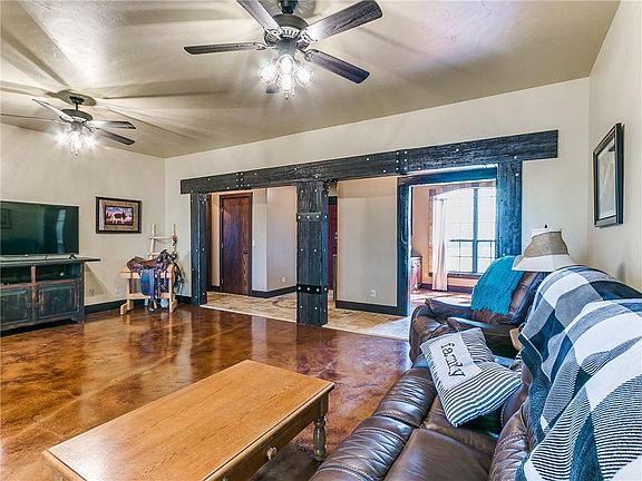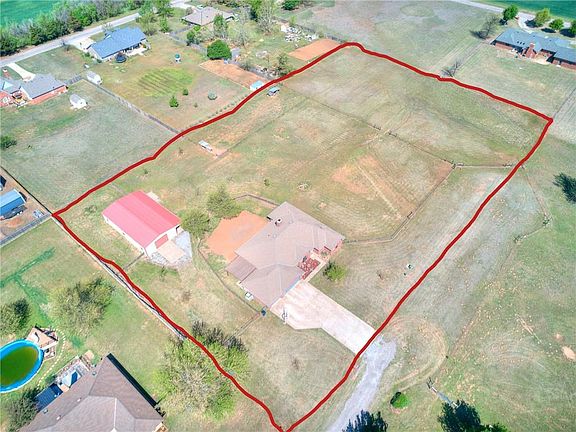 **New roof just completed with upgraded Class 4 impact resistant shingles and warranty**Seller is offering a First American Eagle Premier Home Warranty** Welcome to your dream home, just under 3 acres this property includes three lots 4, 5 and 6. This remodeled home boasts 2278 sqft, featuring 3 spacious bedrooms and 2 full baths. This gorgeous property includes a dedicated office, a remodeled kitchen which is a chef's dream, complete with top-of-the-line stainless steel appliances, beautiful granite countertops, granite sink and stylish custom oak cabinetry. High-end finishes throughout, including beautiful stained concrete and travertine flooring, custom oak baseboards and trim, new fixtures and hardware. Outside is a beautiful pergola, a 30x60 workshop with 2 garage doors and a covered porch of it's own. Seller is including new frig, washer/dryer and a well maintained Gravely zero turn lawn mower! Easy access to I-40, 20 minutes to Yukon and 30 minutes to OKC!