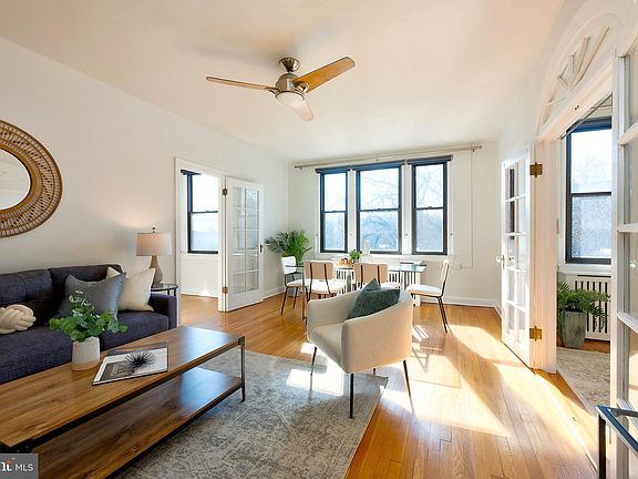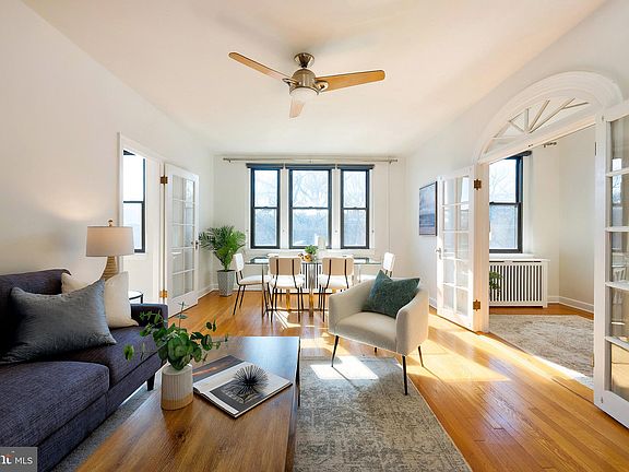 Rarely available, Unit 511 is a 920 square foot top-floor, two bedroom (primary suite + versatile den) home in sought after Forest Hills. Offering a spacious sophisticated living experience with expansive tree-lined views over lush green space, an idyllic blend of urban convenience with nature. Impeccably maintained, the residence boasts unique a private dining area, a welcoming foyer, and generous storage options, including two walk-in hall closets and additional assigned basement storage. The unit is bathed in abundant natural light, with west-facing living areas and an east-facing primary bedroom, all accentuated by gleaming real hardwood floors. The updated kitchen is equipped with a 2025 Frigidaire refrigerator, 2020 GE gas stove/oven, matching microwave, 2019 Bosch dishwasher, complemented by refinished wood cabinetry. The unit is plumbed for an in-unit washer/dryer with hookups, while the building offers laundry facilities for those larger laundry days. Residents enjoy an exceptionally low condo fee that covers heat, gas, water, and high-speed internet, along with access to a range of amenities including an on-site property manager, a fitness center, secure bike storage, and a secure package delivery room. The building has a front and rear entrance, the rear entrance from the alley features an accessible ramp delivering seamless access to the building’s two elevators servicing all floors. Cats are allowed. Rentals are allowed with Board approval (ask about the building’s rental policy). Located near two red line metro stations, Van Ness/UDC (0.2 miles) and Cleveland Park Metro (0.4 miles), ideally positioned for commuting. Steps from the natural beauty of Rock Creek Park, grocery stores, gourmet cafes, restaurants, libraries, schools, embassies, farmers markets, Hearst outdoor swimming pool, Smithsonian National Zoo, and Hillwood Museum Estate. Whether you are drawn to the neighborhood’s effortless mix of urban amenities, vibrant social scene, cultural activities, or easy access to outdoor recreation — your urban sanctuary awaits.