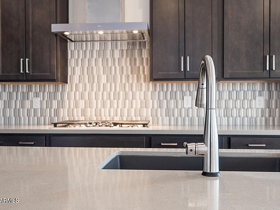 Designer upgraded, 4 bedroom, 3 1/2 bathroom home featuring an attached 3 car tandem garage, a game room, office, outdoor living spaces, north/south exposure, and more! The kitchen includes an Executive GE Profile appliances with a 36'' gas cooktop and hood, a Blanco Diamond Super Single Bowl sink, custom tile backsplash, Della Terra Quartz Blanco Pearl countertops, and Aristokraft Benton Flagstone cabinets. Other upgrades are a frameless walk-in shower, a free standing laundry sink in the laundry room, Daltile 6'' x 36'' Vicinity Gray Brown wood look tile flooring throughout, carpet at the bedrooms, Delta Brilliance Stainless plumbing fixtures and bath faucets, 10' ceilings, 8' tall 6 panel doors, and cultured marble rectangular sinks with square edges. Soft water pre-plumbed.