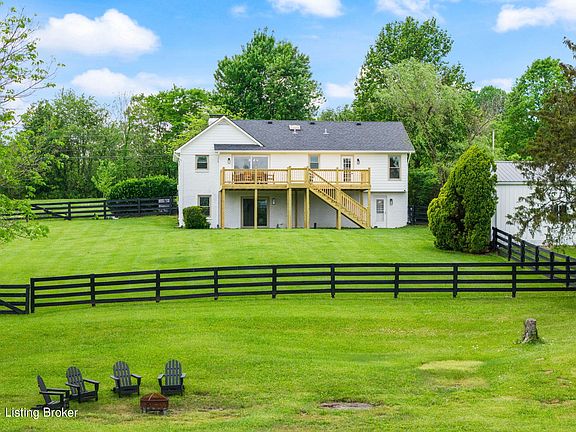 Welcome to 4007 Hambletonian Road, a unique and fully updated multi-generational brick ranch home nestled on 5.01 private acres in the heart of Oldham County! This move-in-ready, spacious 4-5 bedroom/2 full bathroom ranch home with finished walkout basement is a perfect fit for anyone who enjoys the peace and quiet of country living, but prioritizes easy access to main roads, including US-42, US-53 and I-71. The above-grade footprint includes a large, vaulted family room with wood-burning fireplace, kitchen with eat in dining area that opens onto the brand new 12ft x 30 ft deck through a beautiful 8-foot sliding glass door. The windows afford an abundance of natural light and spectacular view of YOUR private land. Down the hall on the main level from the family room, you'll find 3 bedrooms and 1 finished bathroom. The master bath en suite is unfinished, creating a future project for the new homeowner, but it is plumbed and ready for the finishes you choose - whether you opt for a large master shower or a tub/shower combo. The options are endless! The master has a full walk-in closet as well, with attic access. Walk down the stairs to find a second large family room, private office, a mudroom, and a below grade apartment featuring 1 full bathroom, kitchen, and bedroom with egress window! The separate outdoor entry to this space makes it a unique multi-functional space for in-laws, guests, children, or even rental space. You'll enjoy magnificent views of every sunset and plenty of storage in the detached garage (can park 2 or 3) with workshop space. The garage has a 30 AMP RV plug. The shape of the lot affords complete privacy.
