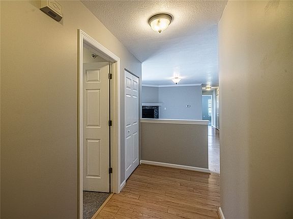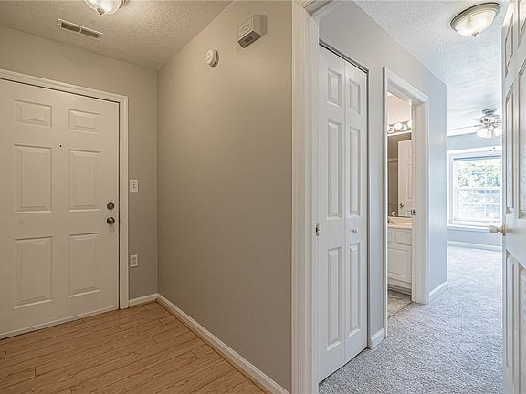 This single-level, 3 BR/2 bath condo offers maintenance-free living in a great location. On entry, you are greeted by a neutral decor & hardwood flooring that runs throughout the living & dining rooms as well as the kitchen. As you head into the main living space you'll pass the master bedroom that features an en suite, walk-in closet, and a large bay window with a window seat. The living room is highlighted by a gas fireplace with a glass-tiled surround, a ceiling fan & sliding glass door leading to a private patio and yard. The room also has a door that conceals a large storage space/closet. Chair rail adorns the dining room. The efficient and fully-equipped kitchen overlooks the living space and features SS appliances plus a closet that houses the washer & dryer. The short hall on the opposite side of the living room leads to a second full bath and two nicely-sized bedrooms. Move-in ready with fresh paint and new carpet. Super convenient location just off McKnight Road.