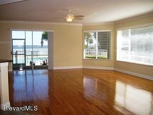 Beautiful Riverfront Corner Unit! Gated Community! Stunning Indian River Views!!Tile Flooring, Wood Flooring, Crown Molding And 9Ft Ceilings! Open Island Kitchen With Granite Counters, Breakfast Bar And River Views. Wood Flooring Through Living An Dining Area. Slider To Large Screened Porch With Entry And View of River And Pool. Bring Your Sail Boat As This Unit Comes With A Dock For It!Expansive Master Suite With Walk In Closets. Master Bath With Double Sinks, Garden Tub And Separate Shower. Office With Wood Flooring. Guest Suite With Full Bath. Large 3rd Bedroom. Full 3rd Guest Bathroom. Laundry Room Has Been Updated With Cabinets And Granite Counter. Full Size 2 Car Garage With Attic Space For Storage. Hurricane Shutters. Close To Shopping & Restaurants.2 Pets Allowed Under 40 Lbs Each!