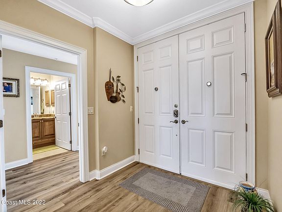 STUNNING RIVERFRONT PENTHOUSE CORNER UNIT! Walking through the front door, you are immediately drawn to the breathtaking river views. The fully upgraded, eat-in kitchen boast custom cabinets, granite counters, and SS appliances. Expansive owner's suite with a private hallway, giant walk in shower, jetted soaker tub, double vanities with granite, and separate water closet. Double closets with custom built-ins, and a large suite with sliding impact doors to the balcony. The 3 other bedrooms include a guest room with on-suite bath, and two generous rooms with a jack and jill. The wrap around balcony provides perfect views of sunrise and sunset! Luxury vinyl floors, plantation shutters, and crown molding are just a few more fantastic features. Unit includes a 2 car garage for your toys! In-unit laundry room with built-ins and tons of storage. Additional closets and storage thoughtfully laid out for maximum space! The wrap-around balcony includes an open-air area for grilling. Enjoy the quiet riverfront pool and spa, and lease a boat slip from the association for true Florida living. When it's time for vacation, just roll down the shutters and travel with full peace of mind.